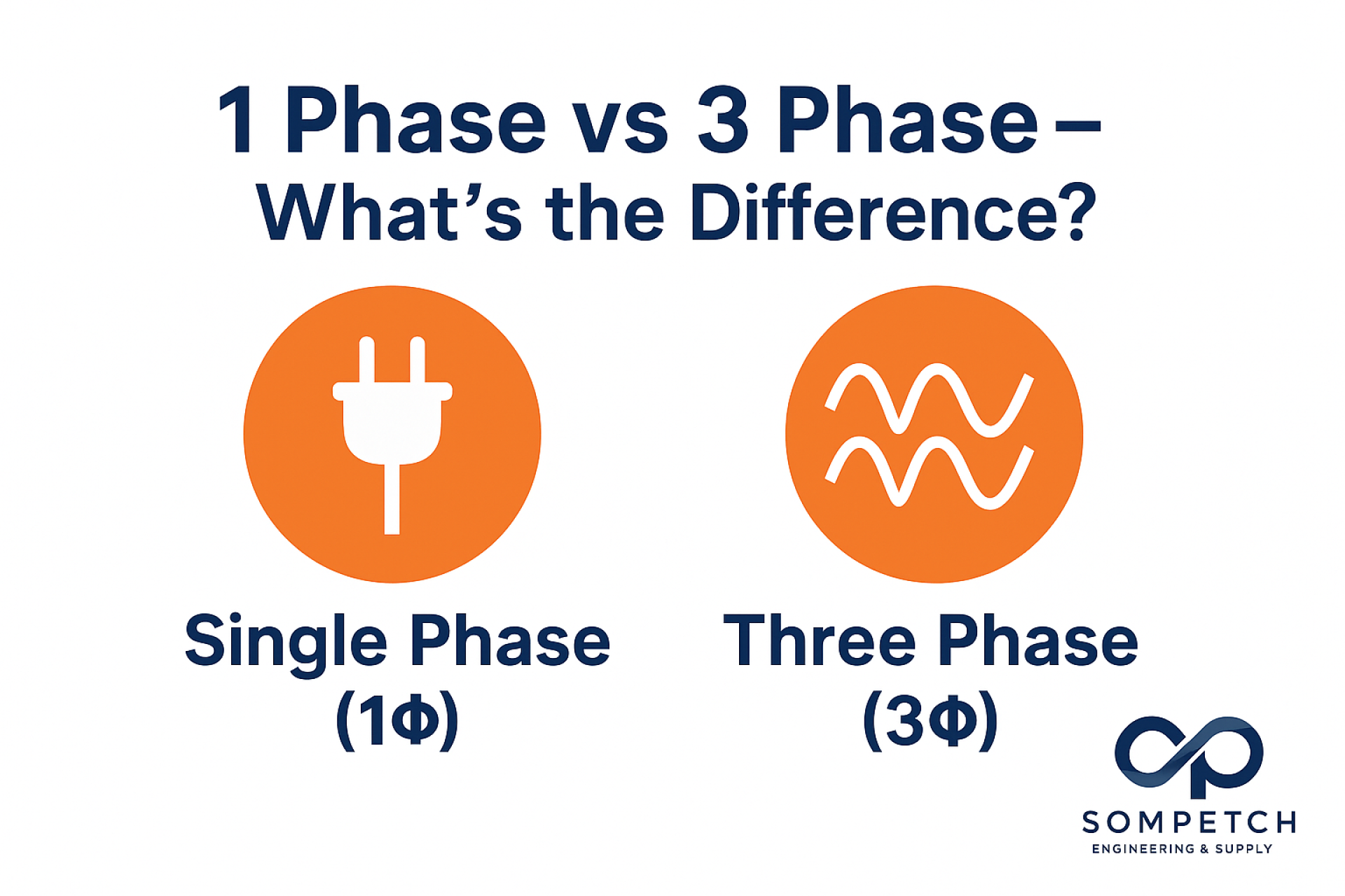 เรามักได้ยินคำว่า ไฟฟ้า 1 เฟส และ ไฟฟ้า 3 เฟส อยู่บ่อยครั้ง โดยเฉพาะเมื่อพูดถึงระบบไฟบ้าน อาคาร หรือโรงงาน แล้วทั้งสองแบบนี้ต่างกันอย่างไร? บทความนี้จาก Sompetch Engineering & Supply จะพาคุณเข้าใจระบบไฟทั้งสองรูปแบบได้ง่าย ๆ ในไม่กี่นาที